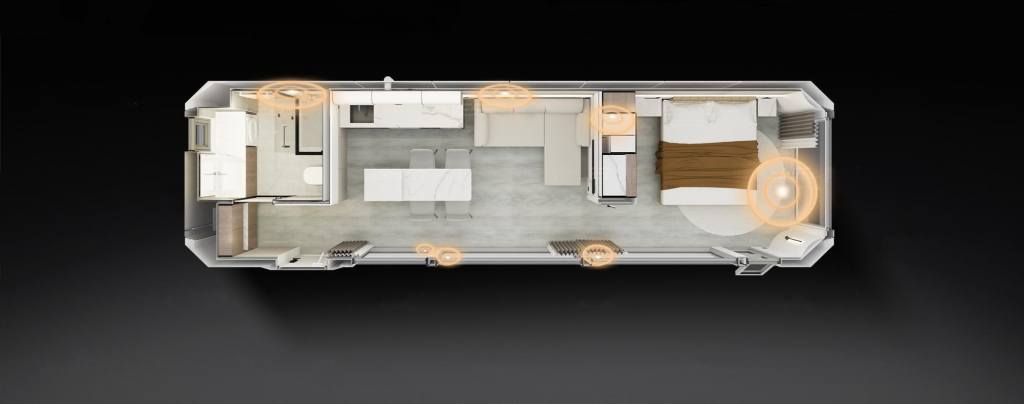 What makes Transvilla so compelling is that these are not basic prefabricated boxes. They are state of the art inside and designed to genuinely impress. Heating and cooling, factory-installed electrical systems, integrated ambient lighting, smart access, smart curtain control, quality appliances, refined cabinetry and sleek finishes combine to create a product that feels modern, high end and seriously liveable. The specification also includes galvanised steel framing, aluminium cladding, high performance glazing, insulated wall systems, smart home capability and factory-installed service routing, all designed for comfort, durability and rapid deployment.