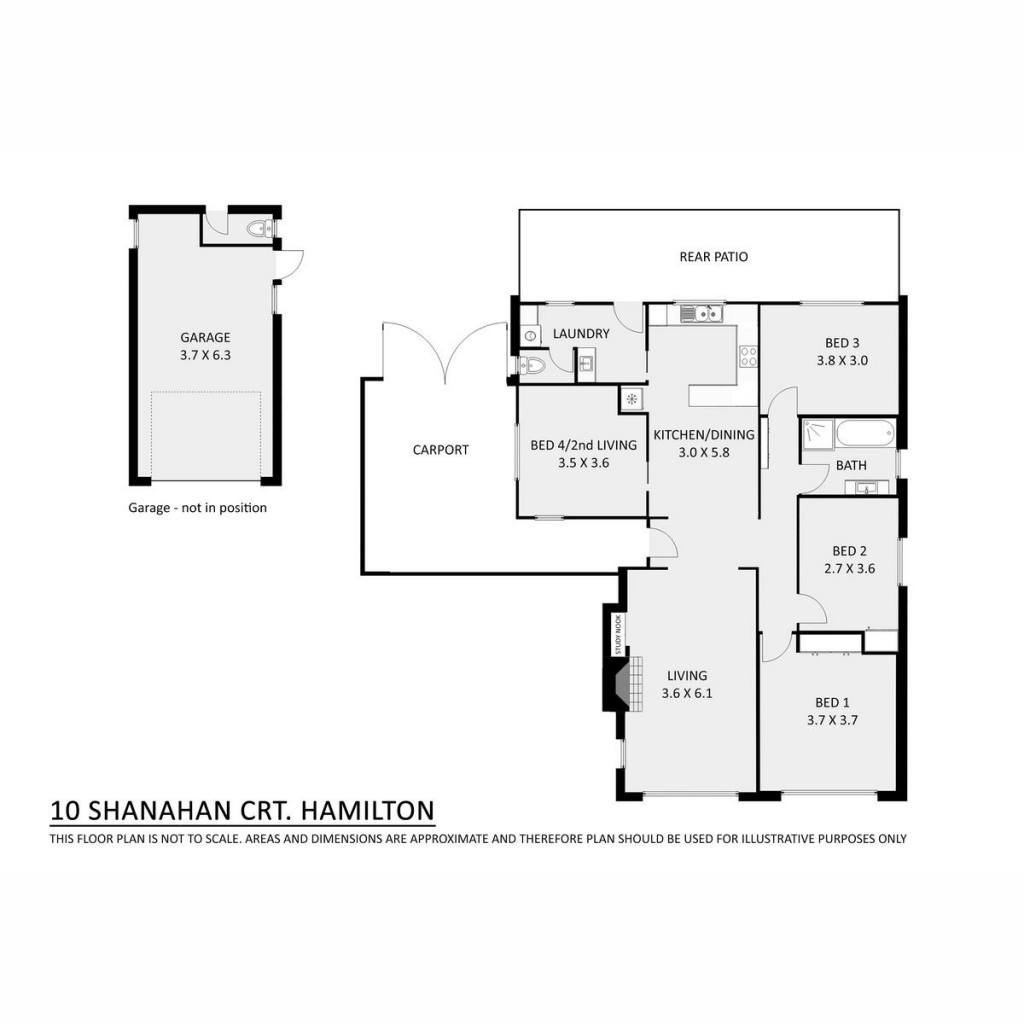 - Fully fenced yard with a single car garage with a concrete floor and second toilet