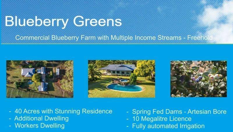 Offered for the first time since 2003, Blueberry Greens is a thriving, multi-award-winning blueberry farm set on 40 picturesque acres—perfectly positioned between Sydney and Brisbane, just 15 minutes to beaches and 40 minutes to Coffs Harbour or Port Macquarie airports.
