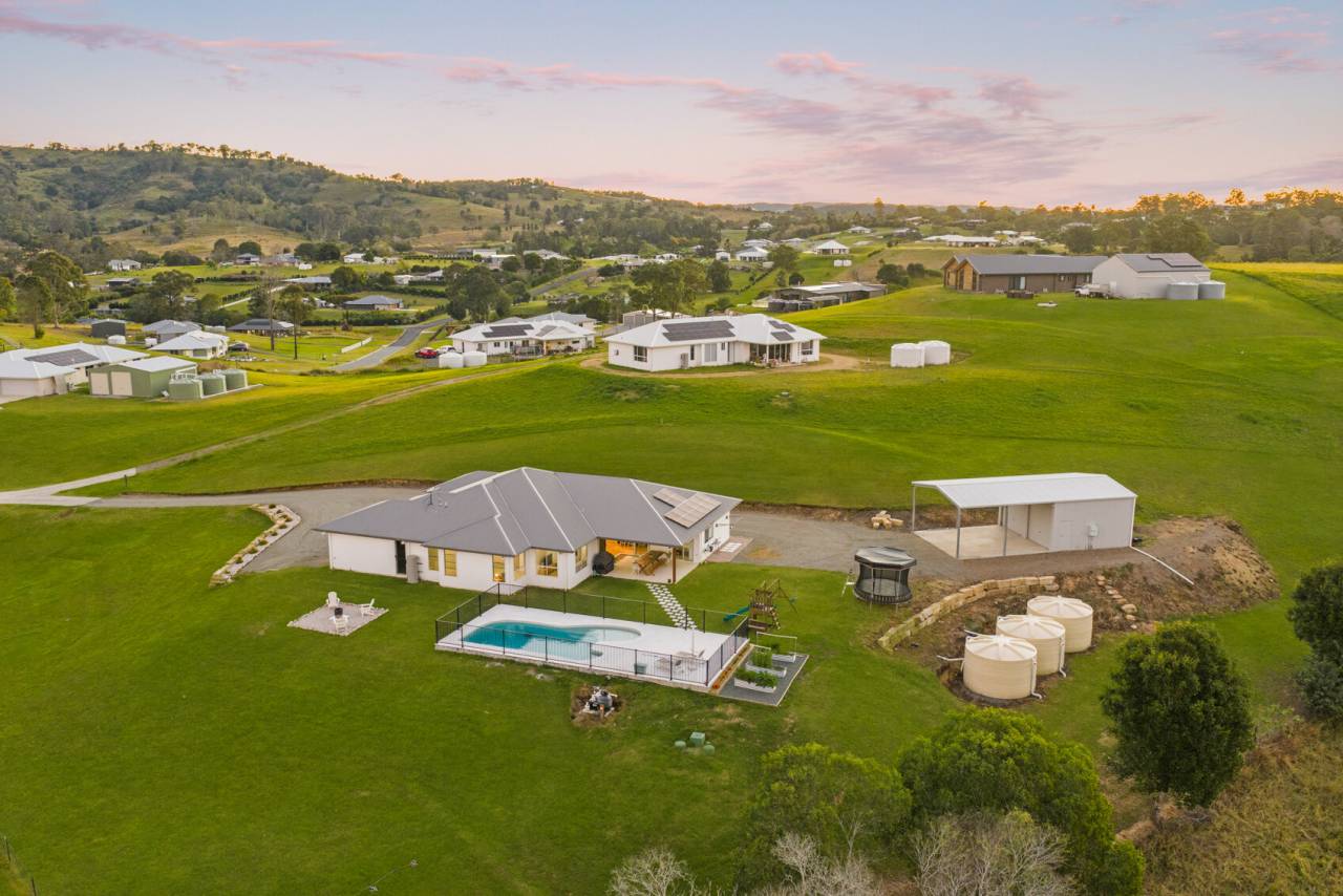 Outdoors, the home truly shines. A brand-new bespoke saltwater swimming pool sets the scene for relaxed weekends and entertaining, while the expansive alfresco area connects directly to the main living space and overlooks manicured gardens and a lush green yard. A double-bay shed with three-phase power caters to tradespeople, hobbyists, or those needing serious storage, and three 5,000-gallon water tanks further enhance the property's practicality.