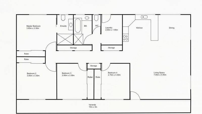 This welcoming home offers a generous open-plan layout where the kitchen, dining and living areas flow together effortlessly, creating a space that feels both practical and inviting for everyday living.