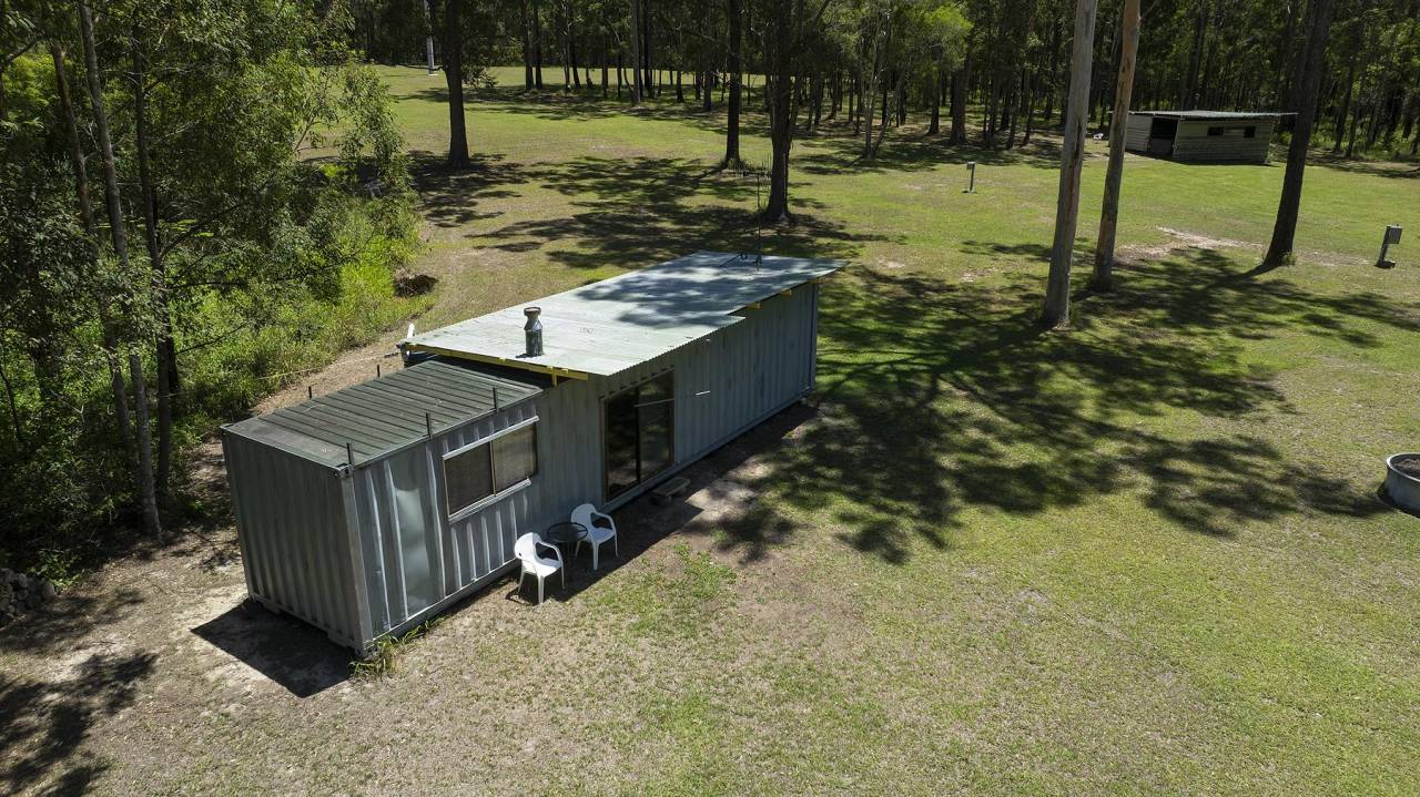 The property features container and shed-style accommodation, 3 phase power, and open space offering immediate functionality for weekend use, storage, or while planning future improvements (STCA).