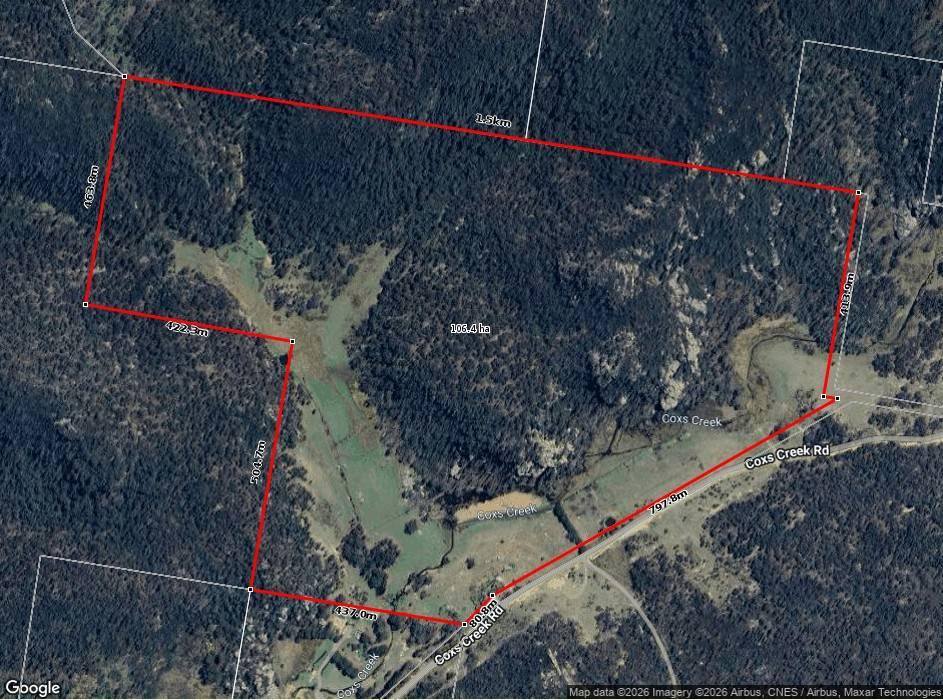 - Frontage to spring-fed Coxs Creek, plus a 24-megalitre water licence accessible via bore