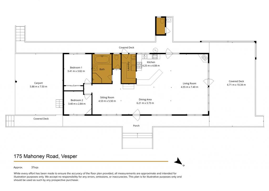 Large roofed deck on the north and bedrooms and a large cool carport on the south.