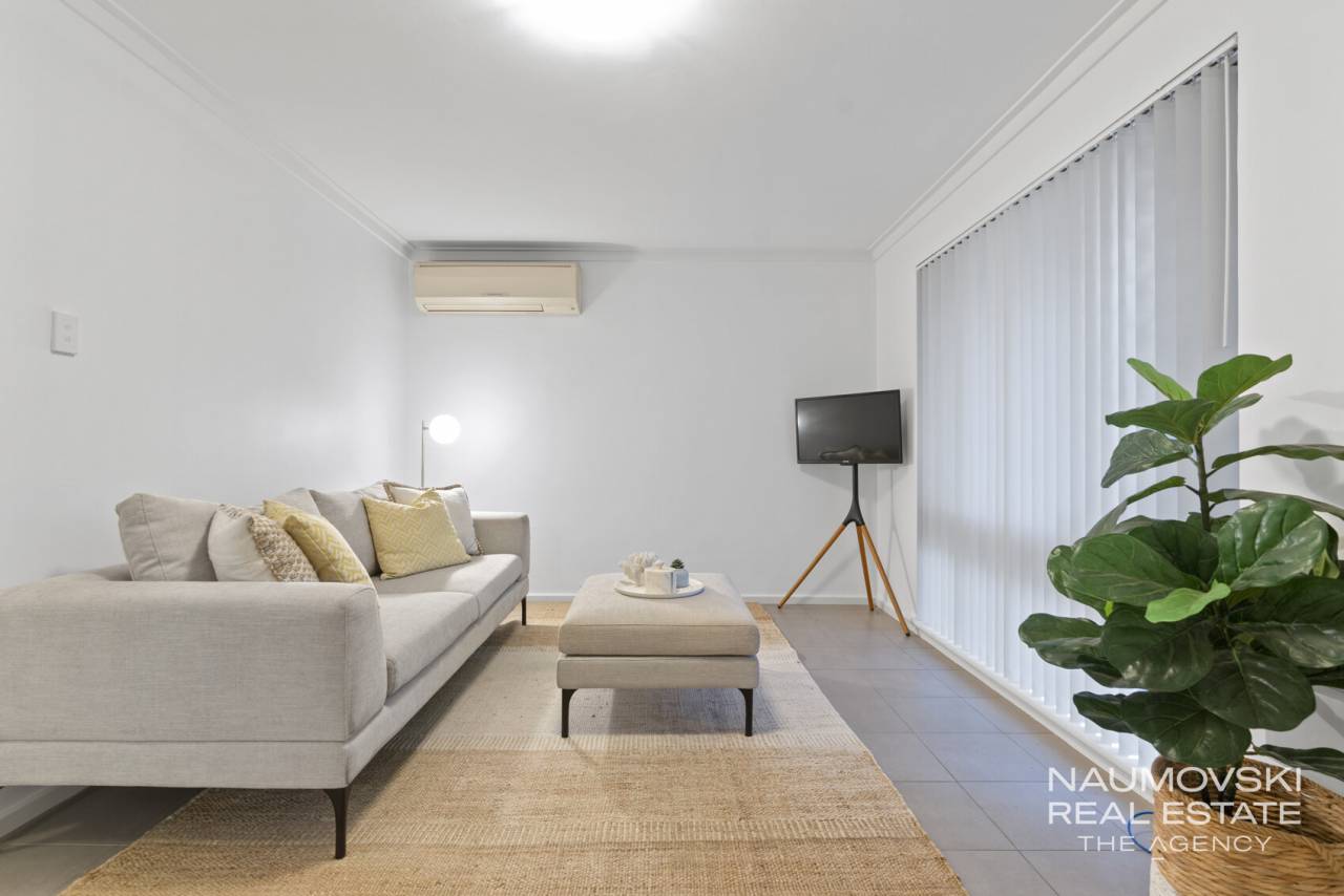 The home's semi open plan design connects the kitchen, family, and meals areas seamlessly, making it the heart of daily living and entertaining. The kitchen features spacious benchtops, a stainless steel oven, and ample storage, all overlooking the dining area and the outdoor entertaining space. Air-conditioning in the living ensures comfort year round, while the flow between indoor and outdoor living makes hosting friends or keeping an eye on the kids a breeze.