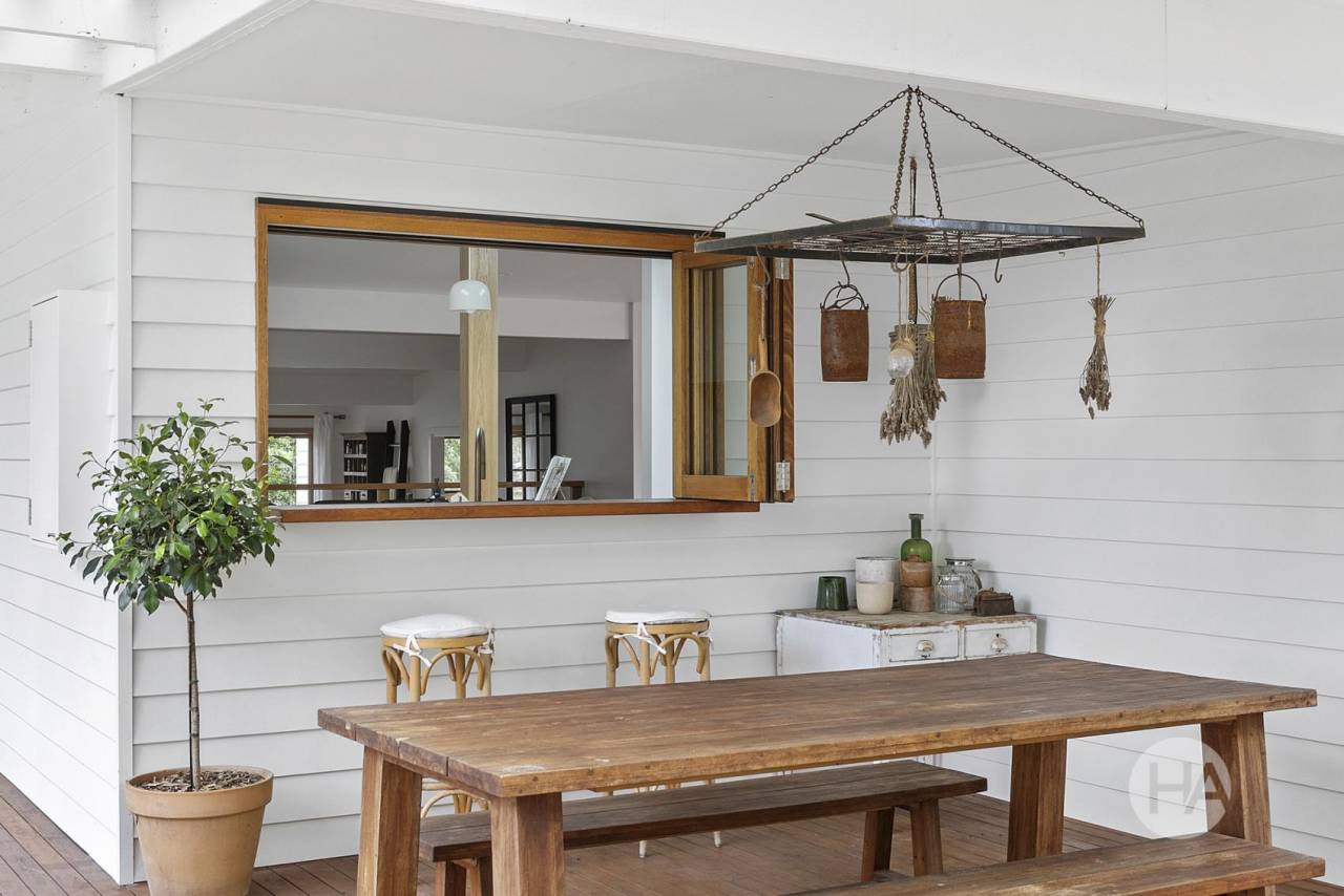 The wraparound verandah of its weatherboard facade doubles as a stunning entertaining deck, echoing with the sounds of native birdlife while enjoying a bi-fold servery window to its expansive dining space. Inside, the adjacent kitchen's rich natural colours, Bosch appliances and elegant finishes complement the warmth of the polished hardwood floors in the dining area, fireside lounge and open sitting area, stretching out to a second deck and a large lawn area ready for the kids to play.