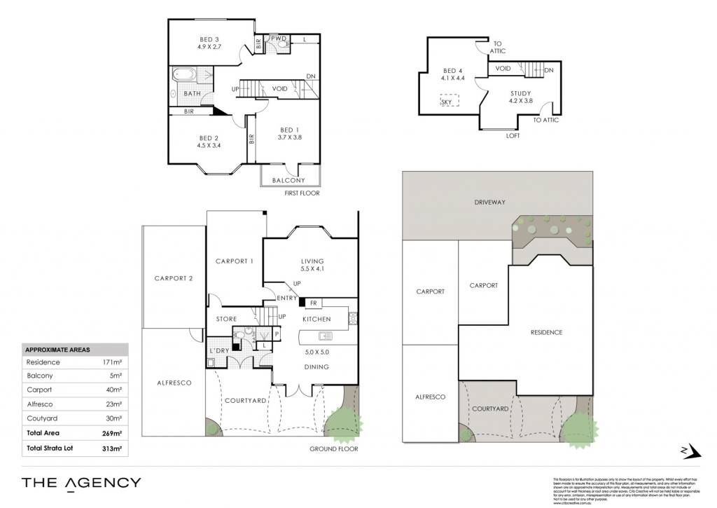 - Four bedrooms across three levels, plus dedicated study in the loft