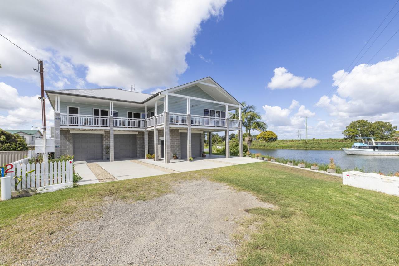 ... One of the larger creeks in the valley flows into the mighty Clarence River at this spot in Lawrence; located 32 kms from Yamba, 28 kms from Grafton and 13 kms from Maclean in Northern NSW. This newly constructed home has been built to take advantage of the sweeping water views whilst offering a family sized and arranged home that can suit every type of clan from growing families to empty nesters.