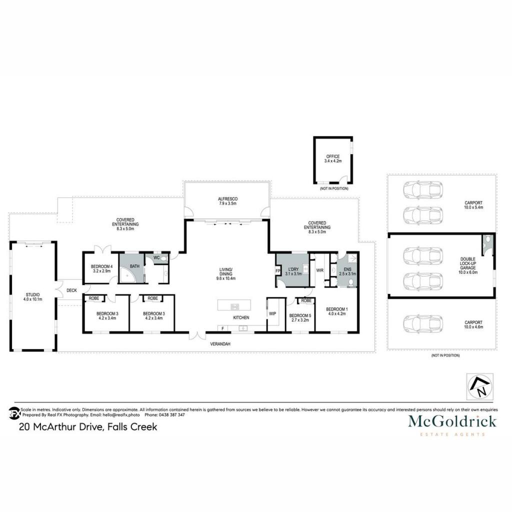 Beyond the main home, a self-contained studio (40m²) and separate office provide genuine flexibility — ideal for extended family, a home-based business, or a dedicated creative space. A treehouse with verandah adds a wonderful touch for younger residents. Vehicle accommodation is extensive, with a double garage, two large carports, and a generous hardstand with basketball ring — easily accommodating boats, caravans, and multiple vehicles.