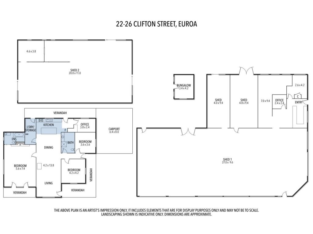 - Current improvements include partially renovated home, older shop front, office, reception, workshops and associated amenities
