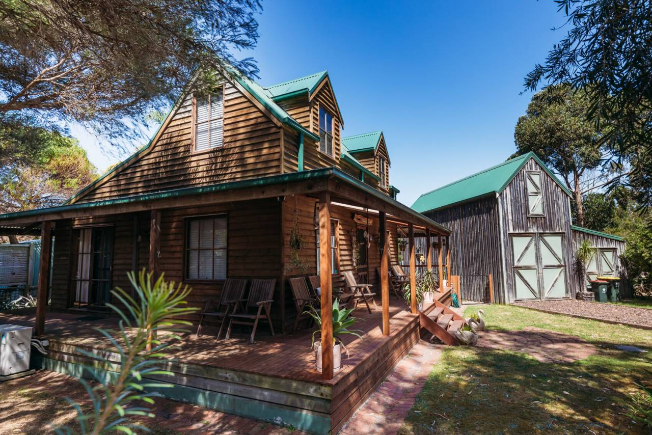 A character filled escape where the coast meets the country. Listen to the sounds of the surf and the wind in the trees - surround yourself with nature in this ideal location just a short stroll from the pristine coastline. With a wide verandah on every side, you can sit back and enjoy views of the native gardens, fenced fire pit area and covered BBQ space. The timber rich interior includes a living room with dado panelling and RC/AC. Gleaming brand new galley style kitchen with adjoining butlers pantry, dishwasher, and adjoining dining area with french doors connecting you to the outside. Master bedroom downstairs, ensuite to main bathroom. Two charming bedrooms upstairs with raked ceilings and dormer windows. Set on an approximately 702m2 block with a separate timber barn providing additional accommodation in the mezzanine loft accessed by a bespoke staircase, storage area and games room. If you are looking for a special place to relax and unwind whilst providing an immediate return from holiday rentals, this is a must see.