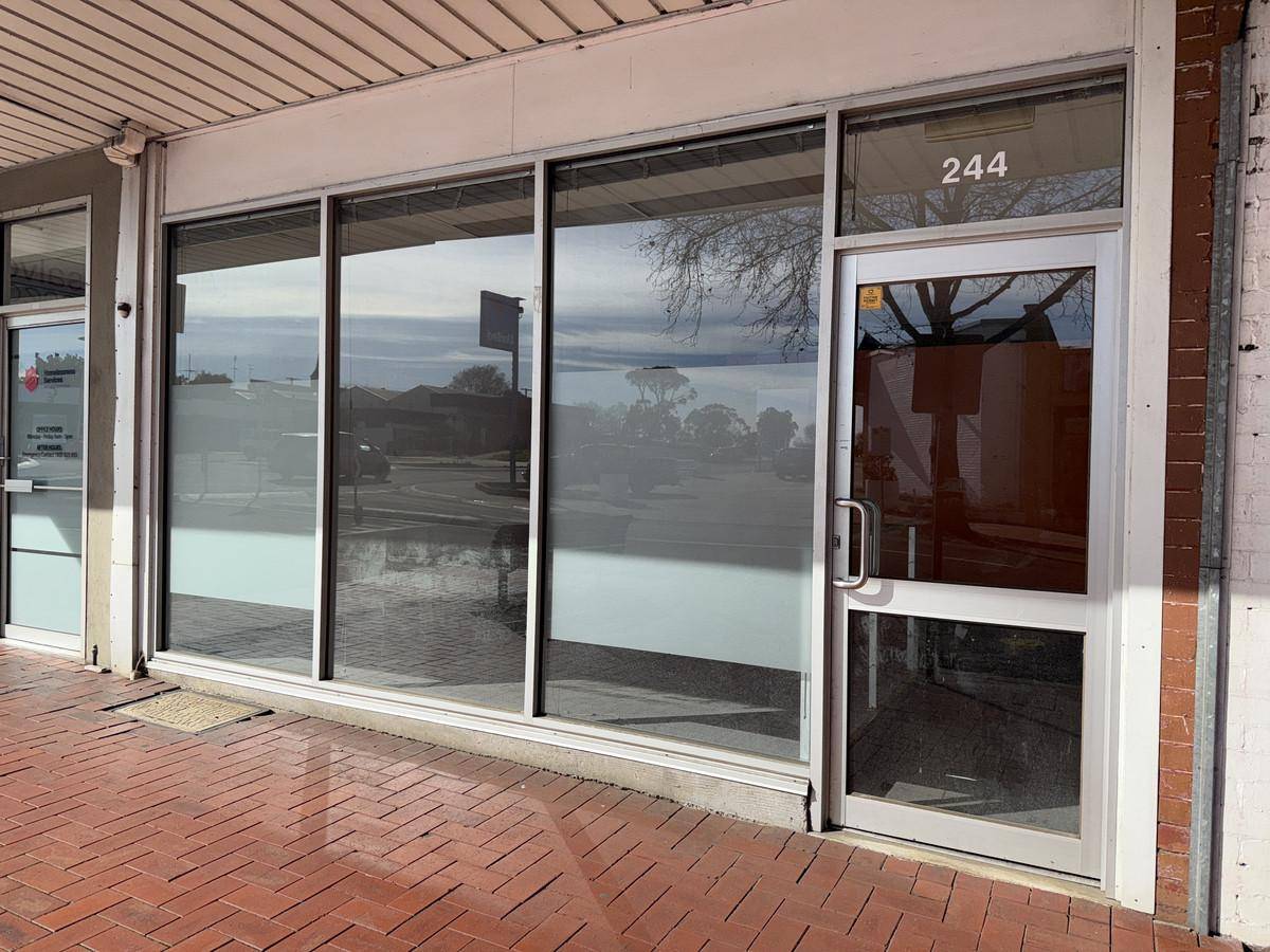 Inside, you'll find a front reception area complete with a full-sized window display, perfect for attracting foot traffic and showcasing your business. A larger private office space is located at the rear of the building, offering a quiet and functional workspace.