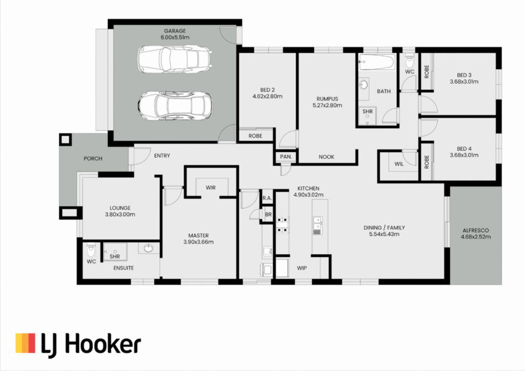 Offering four bedrooms, two bathrooms and three separate living zones, the layout is well considered. A front lounge ensures privacy for the master bedroom positioned just behind, while the remaining bedrooms are grouped off the rumpus.