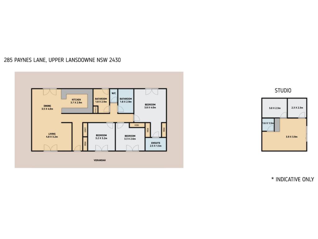 Services include electricity, two 20,000 liter water tanks, an aerated septic system, and a double garage beside the home. A separate two-bedroom container-style granny flat is also on site, and makes for separate accommodation..