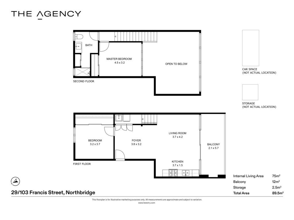The lower level features an open-plan living, dining and kitchen zone, along with one bedroom, offering flexibility for everyday living or guest accommodation. Upstairs, the main bedroom provides separation from the living areas, with the bathroom conveniently located on the upper level.