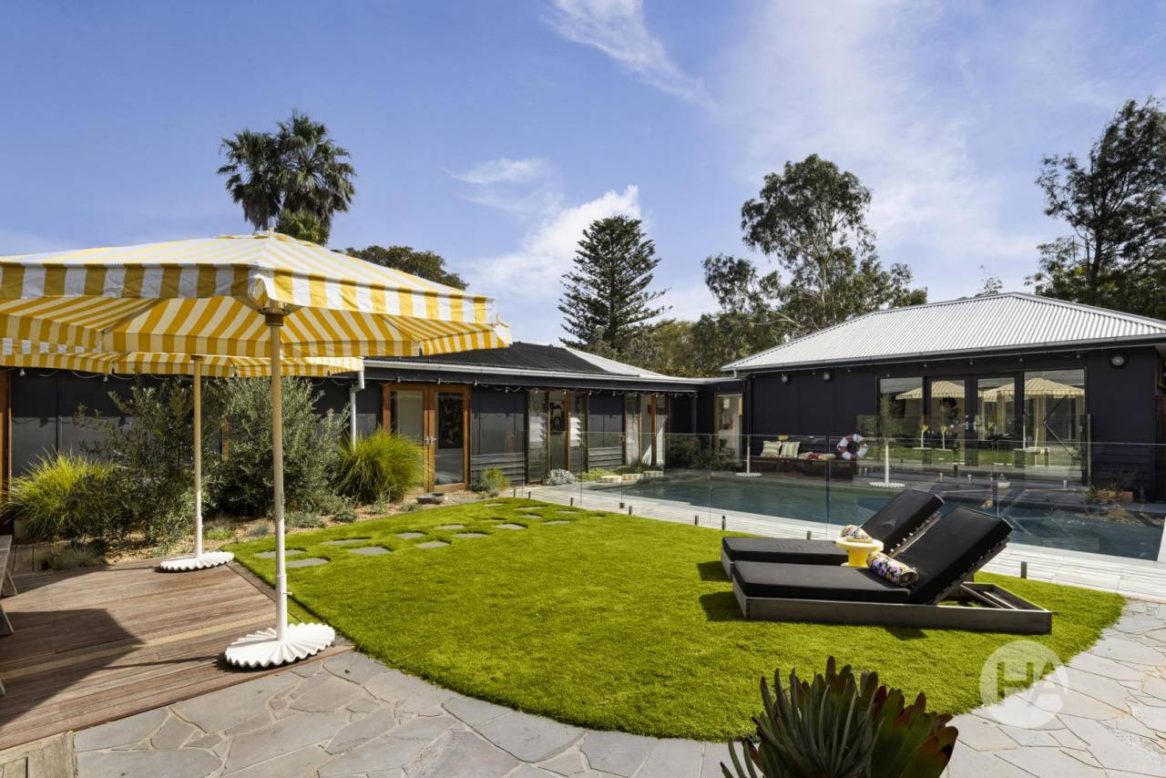 Centred around a sun drenched pool and private courtyard, this mid century inspired home captures a relaxed Palm Springs / Byron Bay way of living, where long lunches drift into golden afternoons and indoor outdoor living feels entirely seamless. A servery window connects the kitchen to the outdoors, while a plumbed barbecue and integrated bar fridges make entertaining intuitive and refined.