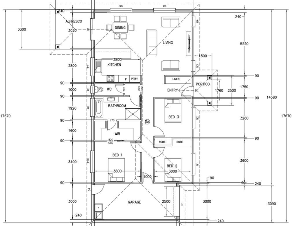 - Modern kitchen and dining area leading into lounge room.
