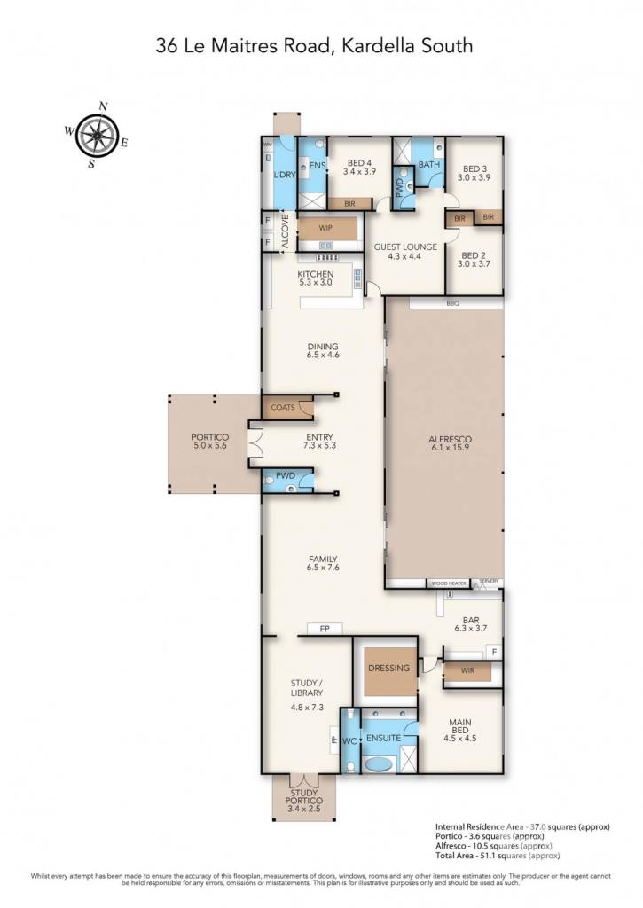 • Vast alfresco zone with built-in kitchen and all-weather blinds.