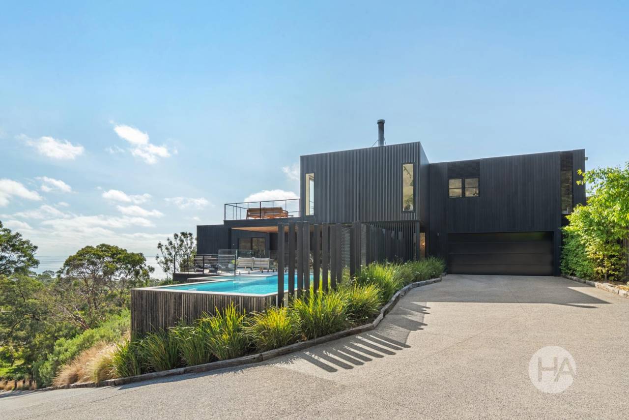 Perched high on the slopes of Arthurs Seat and surrounded by tranquil bushland, this magnificent tri level residence showcases exceptional design, luxurious living and breathtaking panoramic views. Thoughtfully crafted with a natural palette and rich tactile materials, the home exudes warmth, sophistication and timeless style, creating a refined yet welcoming retreat for family living.
