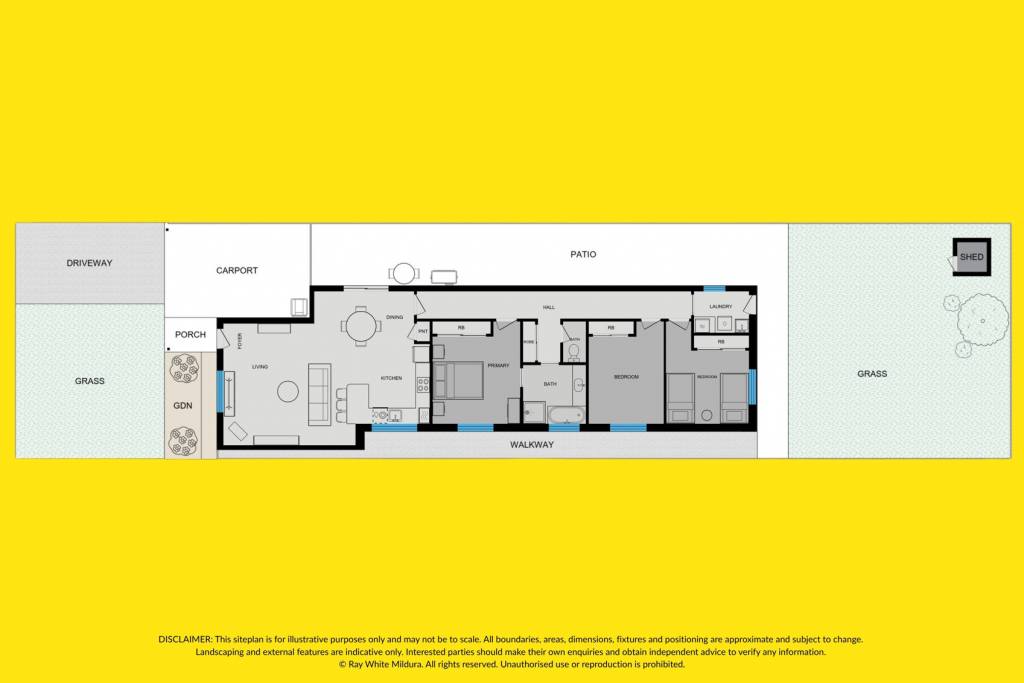 All three bedrooms are fitted with ceiling fans to ensure year-round comfort, while a split system heating and cooling unit located in the living area provides efficient climate control for the main space.