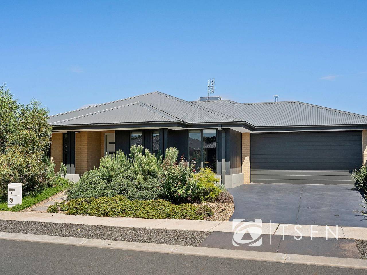 The home is enhanced by low-maintenance gardens with established native plants and Colorbond fencing for privacy.