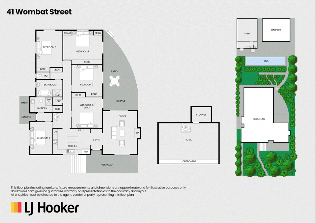 Accommodation comprises four well-sized bedrooms, all with built-in robes, plus a versatile fifth bedroom, sitting room, or home office with external access to the terrace—ideal for those working from home or seeking additional flexibility.