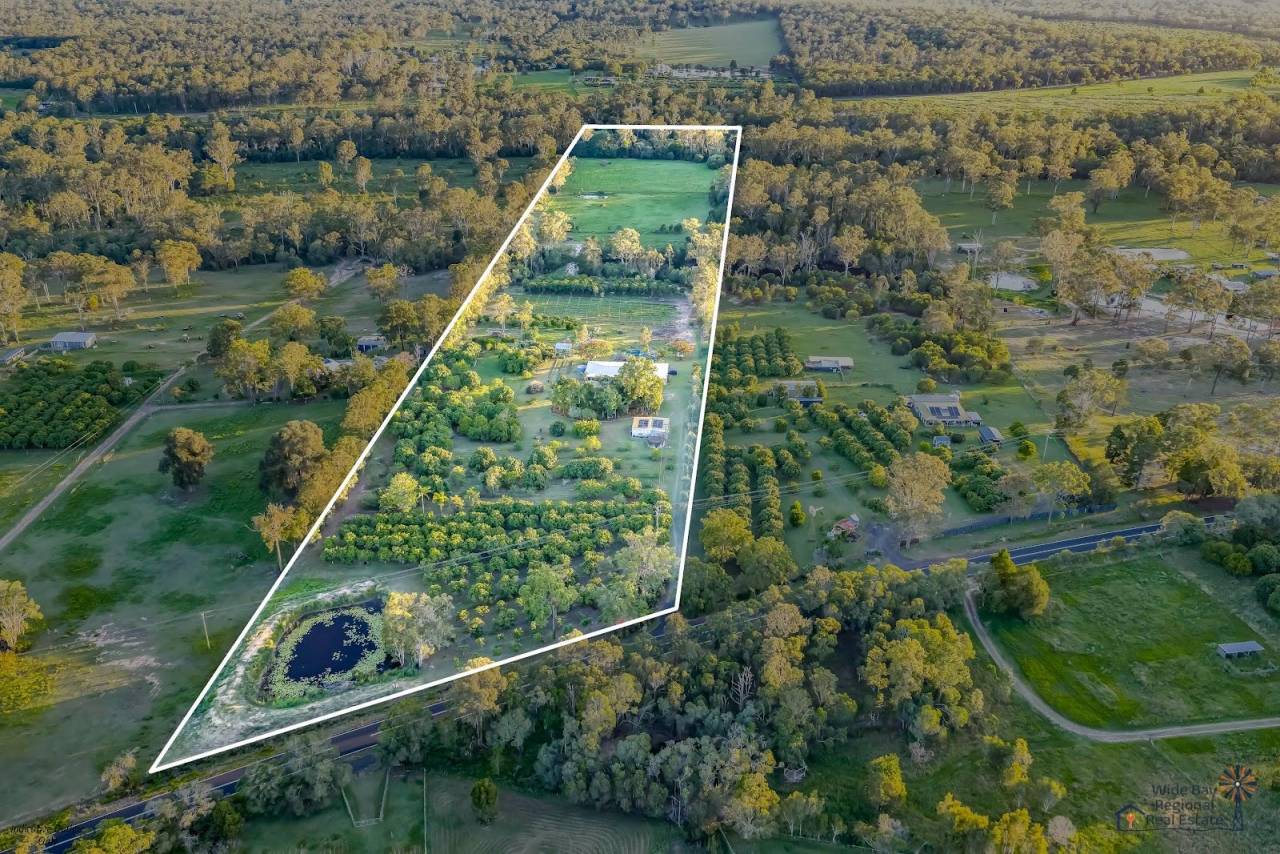 Nestled amidst the tranquil surrounds of Goodwood, 42 Woodgate Road offers a rural lifestyle perfect for families seeking space, comfort, and charm. This 17.34-acre property is a horticulturist's haven, with a bountiful array of established fruit trees including 280 mangoes, 100 custard apples, Macadamias, Citrus, Bananas, lychees, Jackfruit, Limes, Lemons and an Apple tree. Water allocation includes 10 acres unlimited supply from the Gregory River, good draining river loam soils divided across multiple paddocks with a great opportunity for further cultivating or planting a lucerne or cereal crop.