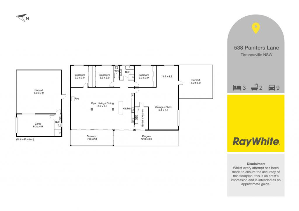 • 12x7m shed with oversized double carport, enclosed bay, two roller doors, full bathroom (currently leased as horse clinic venue)