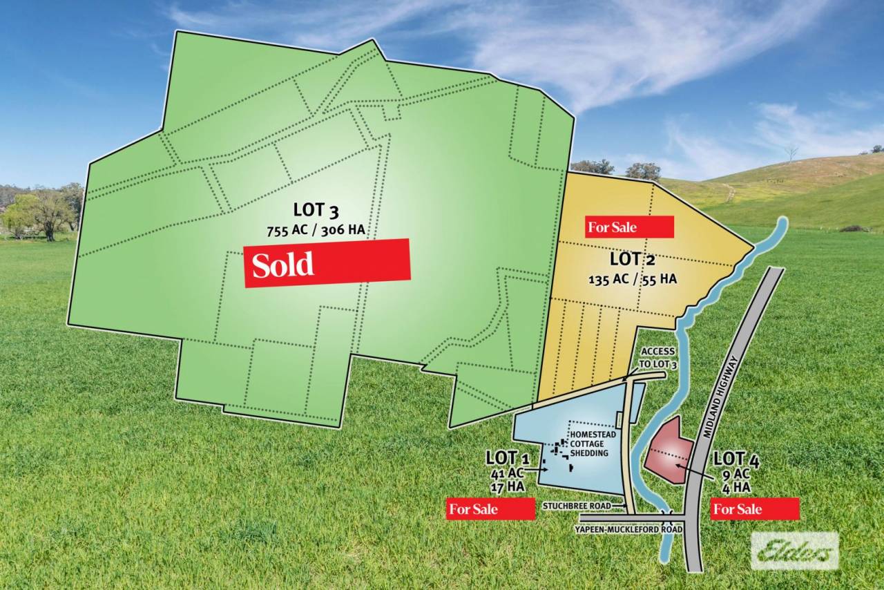 Lot 3 (UNDER CONTRACT) is the largest of the allotments offering 755 acres / 306 hectares of cropping paddocks and undulating grazing paddocks, dams, and areas of native bush.