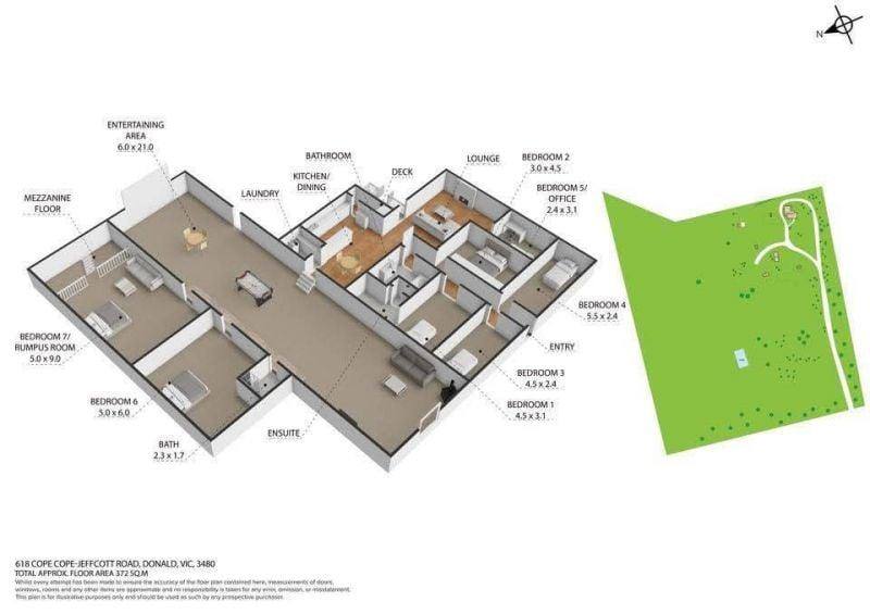 The standout feature is the impressive 21m x 6m entertaining area — perfect for large gatherings — fitted with a wood fire, BBQ, kitchen cabinetry, and roller and glass sliding doors for indoor/outdoor living. The massive bedroom seven / rumpus room (9m x 5m) includes a mezzanine floor and split system, offering flexible space for guests, games, or home business use.