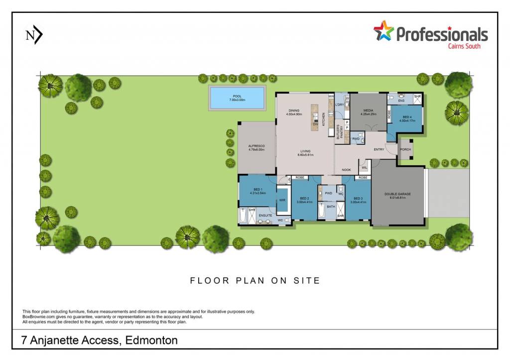 Nestled near Millhouse estate and surrounded by other executive homes, this magnificent modern residence presents a rare rental opportunity for a family seeking an amazing home less than 15 mins from the Cairns CBD. The expansive home exceeds 300sqm on a quarter acre block and offers both privacy and an enviable lifestyle. From the entrance you are greeted by a voluminous open plan living and dining area completed with glimpses of the exotic gardens. The home is fully air-conditioned and enhanced with security screens and a mixture of curtains and blinds. Tiled floors guide you through the residence, first to a large media room followed by the large open plan with practical kitchen which includes a dishwasher and butler’s pantry. The master suite is a luxurious retreat with a spacious ensuite, dual vanity, and large walk-in robe, while the additional bedrooms are appointed with built-in robes. Plush carpet in all bedrooms. A chic main bathroom includes a separate shower and bath, and the internal laundry offers generous storage solutions with easy access to the clothesline. Outdoors, the huge alfresco area overlooks a sparkling inground Freshwater pool (no chlorine), perfect for entertaining or relaxing in the Queensland sun. The spacious and fenced backyard includes many Tropical fruit trees, other exotic plant species and a small garden shed. Energy efficiency is key, with a 6kw solar system. Double garage with remote. This is an opportunity not to be missed for those seeking a superior lifestyle, all within an exclusive community setting. Pets on application. Available from 16/03/2026.
