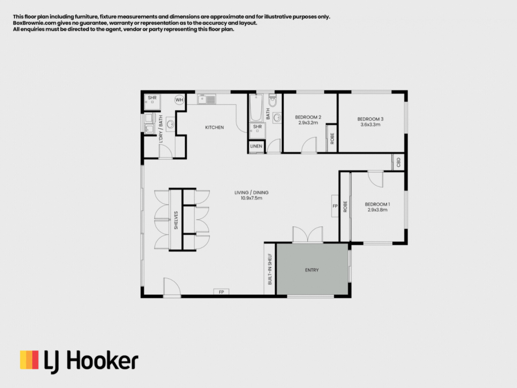 The home is a brick-look clad, sprawling three-bedroom, one-bathroom property with a large open-plan living area. Recently repainted, the generously sized bedrooms feature large windows that draw in natural light. Two of the bedrooms have built-in robes, while the third has space for storage to be added. The main bathroom includes a separate shower and bath, offering easy walk-in access.