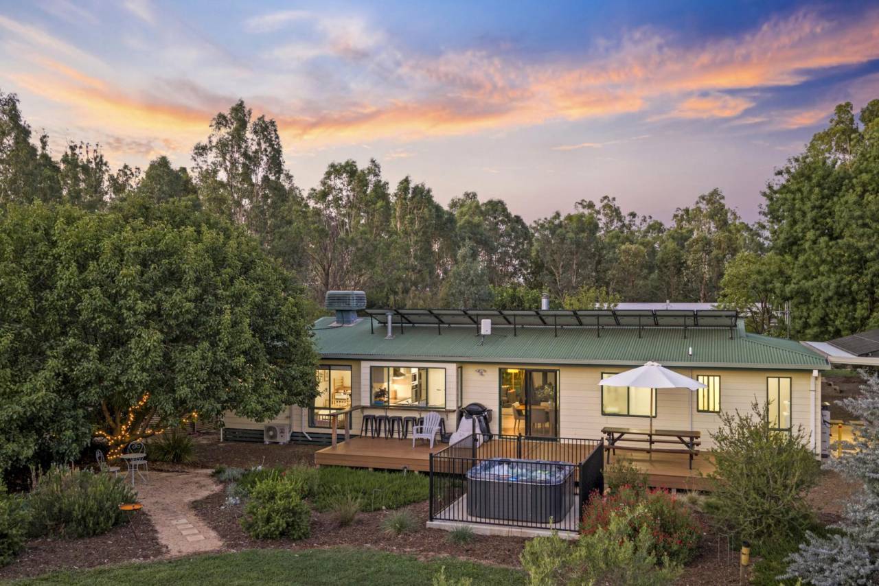 Year-round comfort is ensured with evaporative cooling, split-system heating and cooling in every bedroom and living space, and a fireplace anchoring the main living area.