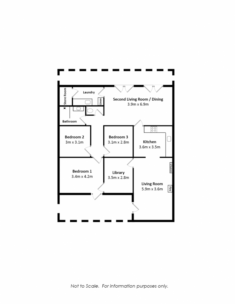 The laundry provides exceptional bench space and a built-in linen cupboard, with an adjoining storeroom currently used for cleaning equipment. At the rear of the home, an open living/dining area features double French doors that flow out to the backyard, filling the room with natural light.