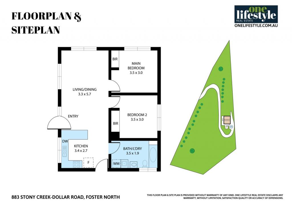 The property includes two bedrooms, both with built-in robes, adjacent to the lounge area. A modern combined bathroom and laundry sits conveniently opposite the kitchen. Outside, a 35,000-litre rainwater tank provides ample water supply for the property.