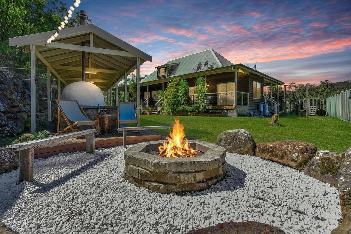 Spanning an impressive 58.2 hectares (approx. 143 acres), this property features around 40 arable, lush, pastured acres, tailor-made for equestrian pursuits or livestock. The balance of the land is pristine bushland, teeming with native wildlife and spectacular sandstone outcrops. Meandering trails weave through the property, revealing breathtaking vistas, secluded spots, two dams and a picturesque creek – your very own private bush haven.