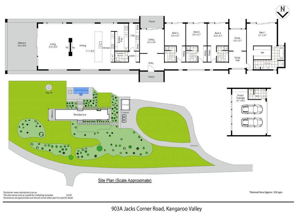 Accommodation comprises four generous ensuite bedrooms, all oriented to capture the views and fitted with built-in robes. The master suite is privately positioned beyond a large study and features a walk-in robe and luxurious ensuite with freestanding bath. A separate double lock-up garage with full bathroom offers flexibility as a studio or guest suite.