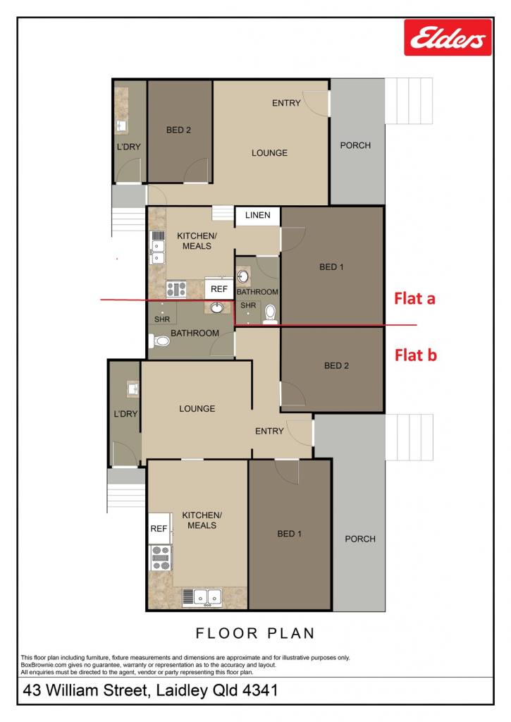The other flat is available and ready for a new tenant at $350PW or why not choose to move in yourself. Two flats offering two bedrooms and one bathroom each, both with air conditioning, timber floor, security screens, sweet front porch, car accom. and secure fenced yard. Never a vacancy rate here, these flats are snapped up by tenants for the location, size and convenience they offer. Utilities are shared water meter and separate power meters.No body corp fees here.