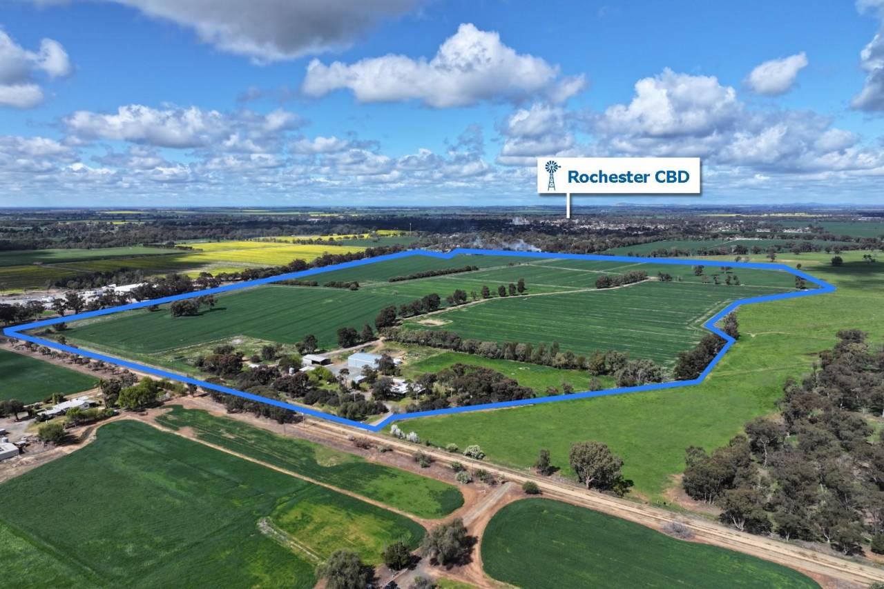 Situated just past the northern edge of Rochester township and in close proximity to Echuca in the heart of North Central Victoria, this outstanding 62-hectare (approximately 153 acres) property offers a fantastic opportunity for those seeking a versatile farming and lifestyle property. Combining the security of groundwater irrigation farming for cropping and livestock production, this property will also be perfect for running a business out of the large industrial shed combined with any farming enterprise. Location of the home is very convenient being close to town on a bitumen road.