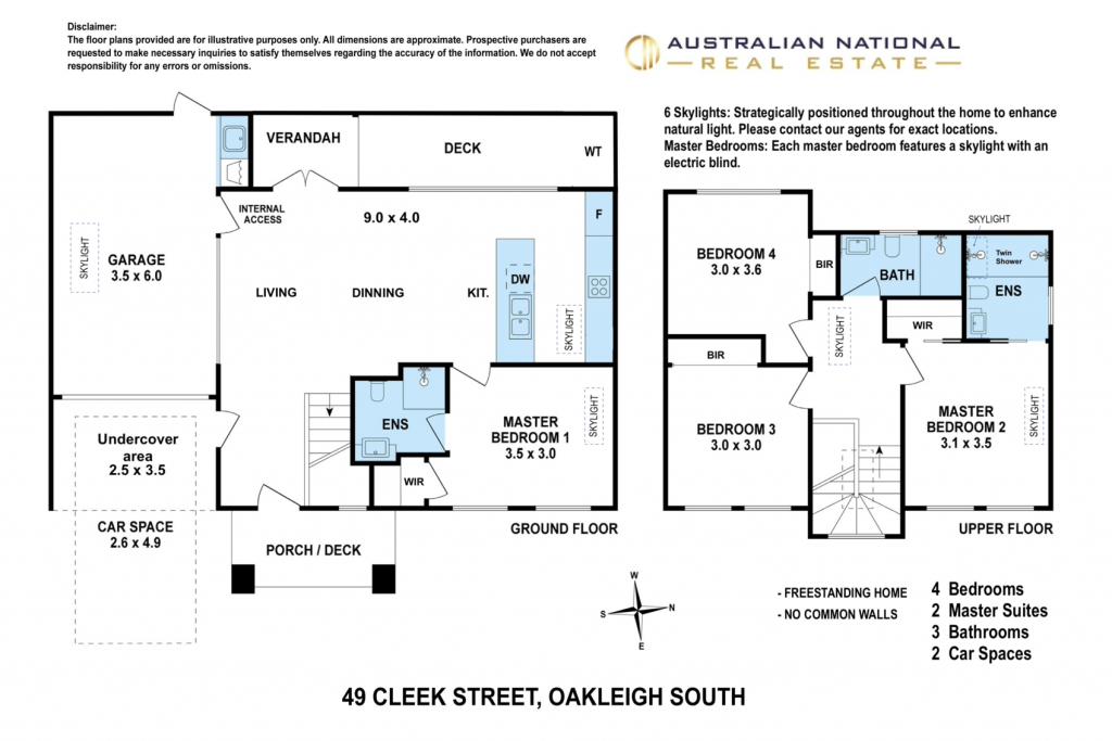 - Dual Master Suites: Ground and upper-level master suites with skylights and electric blinds, perfect for family living or guests