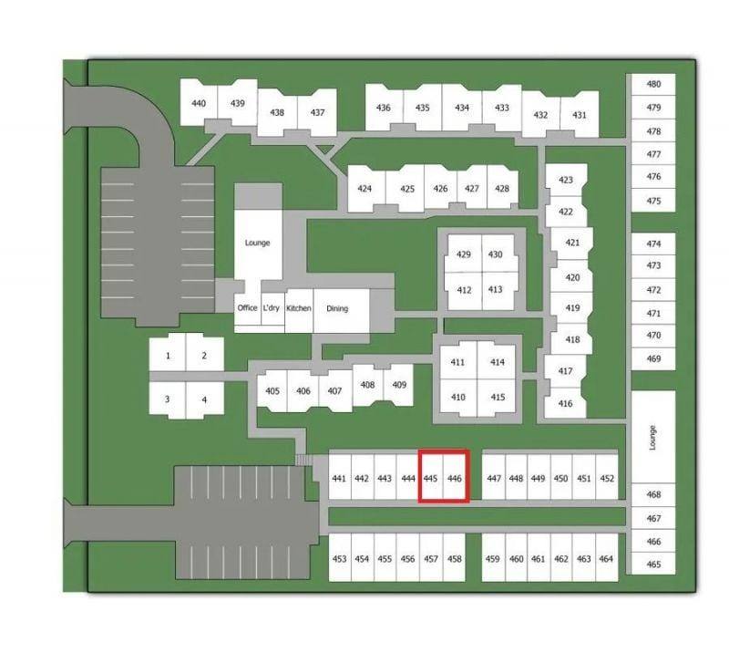 A rear courtyard space is accessed via a sliding glass door and the complex offers an Air conditioned communal room complete with books/computers/lounge area and a big covered outdoor seating area as well as a large air conditioned community centre that also has a kitchenette/lounge area/games room etc. A centrally located air conditioned dining and kitchen hall takes care of the occupants meal times with breakfast/chef prepared cooked lunch/coffee & tea facilities provided at an extra cost to the tenant/occupant. A coin laundry is also at the ready come clothes washing day and covered concreted walkways ensure a safe and covered passage around most the complex. Mailboxes are also located near the Reception office and tenants also have the ease of a post box on site if they still use the old style mail...however if they are tech savvy and want e-mail then NBN is also able to be connected to each unit thru the Reception office system.